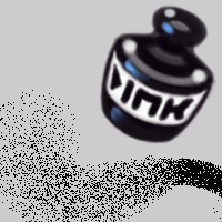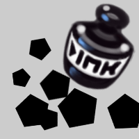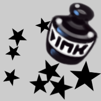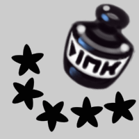 Use stars, pentagons, dots, and other shapes set to erase mode to create a fanciful background. Unlike Spray, Spritz creates some grayscale. This can be converted to bitmap with little loss.