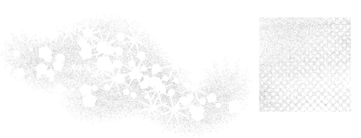 The size of the halftone is ranked by the number of dots per square millimeter (at 600dpi). The largest in this set is designated 1mm and 2mm, while the smallest is 32mm. Each of these brushes applies a full range of tone, from light to dark.