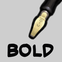 This one is a hybrid of a bevel-edged type nib and brush. It leans towards a particular angle, but you can adjust the width of line with pressure.